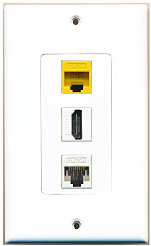 RiteAV - 1 Port HDMI 1 Cat5e Ethernet White 1 Cat5e Ethernet Yellow Wall Plate Decorative