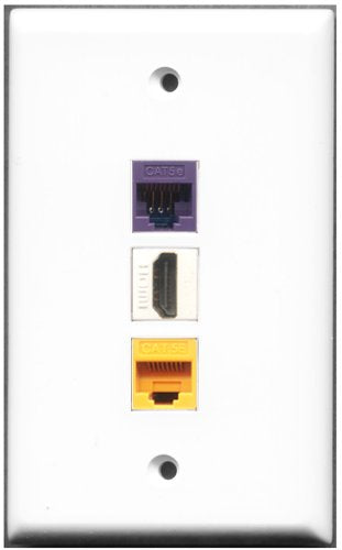 RiteAV - 1 Port HDMI 1 Cat5e Ethernet Yellow 1 Cat5e Ethernet Purple Wall Plate