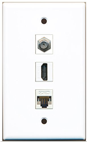 RiteAV - 1 Port HDMI 1 Coax Cable TV- F-Type 1 Cat5e Ethernet White Wall Plate