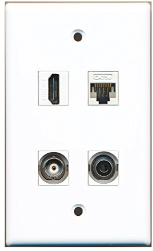 RiteAV - 1 Port HDMI 1 Port 3.5mm 1 Port BNC 1 Port Cat5e Ethernet White Wall Plate