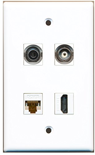 RiteAV - 1 Port HDMI 1 Port 3.5mm 1 Port BNC 1 Port Cat6 Ethernet White Wall Plate