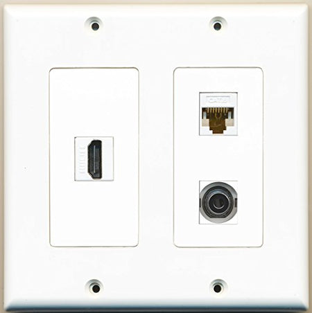 RiteAV - 1 Port HDMI 1 Port 3.5mm 1 Port Cat6 Ethernet White - 2 Gang Wall Plate