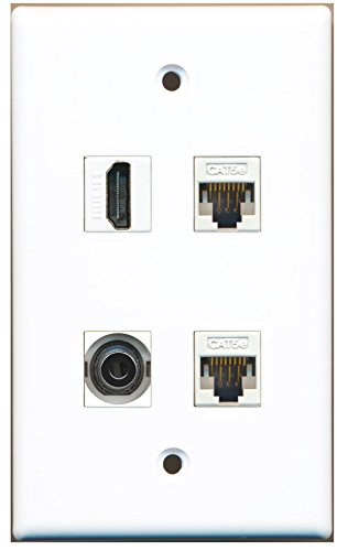 RiteAV - 1 Port HDMI 1 Port 3.5mm 2 Port Cat5e Ethernet White Wall Plate