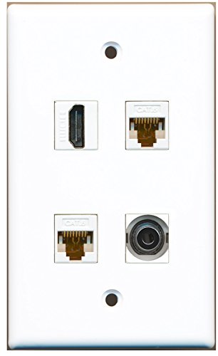 RiteAV - 1 Port HDMI 1 Port 3.5mm 2 Port Cat6 Ethernet White Wall Plate