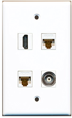 RiteAV - 1 Port HDMI 1 Port BNC 2 Port Cat6 Ethernet White Wall Plate