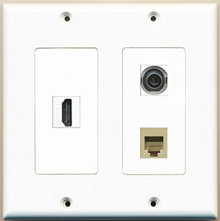 RiteAV - 1 Port HDMI 1 Port Phone RJ11 RJ12 Beige 1 Port 3.5mm - 2 Gang Wall Plate