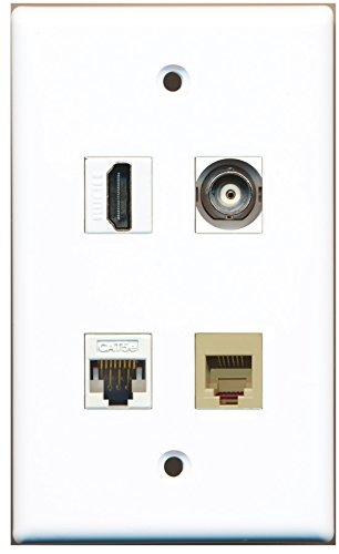 RiteAV - 1 Port HDMI 1 Port Phone RJ11 RJ12 Beige 1 Port BNC 1 Port Cat5e Ethernet White Wall Plate