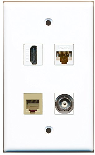 RiteAV - 1 Port HDMI 1 Port Phone RJ11 RJ12 Beige 1 Port BNC 1 Port Cat6 Ethernet White Wall Plate