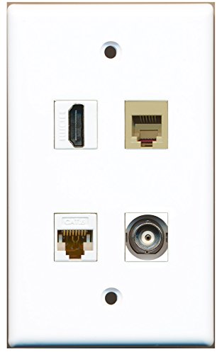 RiteAV - 1 Port HDMI 1 Port Phone RJ11 RJ12 Beige 1 Port BNC 1 Port Cat6 Ethernet White Wall Plate