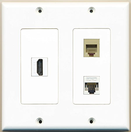 RiteAV - 1 Port HDMI 1 Port Phone RJ11 RJ12 Beige 1 Port Cat5e Ethernet White - 2 Gang Wall Plate