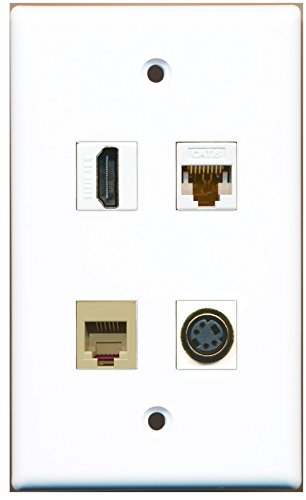 RiteAV - 1 Port HDMI 1 Port Phone RJ11 RJ12 Beige 1 Port S-Video 1 Port Cat6 Ethernet White Wall Plate