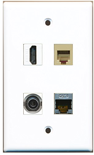 RiteAV - 1 Port HDMI 1 Port Phone RJ11 RJ12 Beige 1 Port Shielded Cat6 Ethernet 1 Port 3.5mm Wall Plate