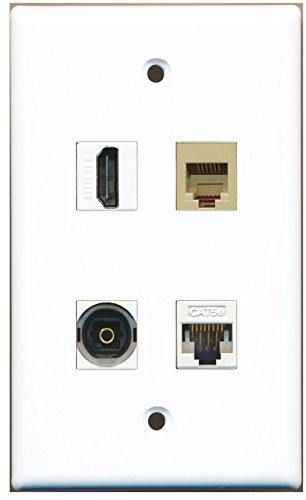 RiteAV - 1 Port HDMI 1 Port Phone RJ11 RJ12 Beige 1 Port Toslink 1 Port Cat5e Ethernet White Wall Plate