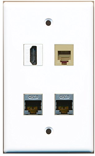 RiteAV - 1 Port HDMI 1 Port Phone RJ11 RJ12 Beige 2 Port Shielded Cat6 Ethernet Wall Plate