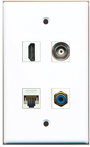RiteAV - 1 Port HDMI 1 Port RCA Blue 1 Port BNC 1 Port Cat5e Ethernet White Wall Plate