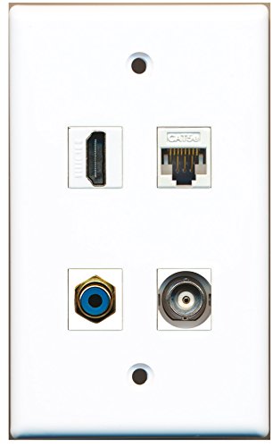 RiteAV - 1 Port HDMI 1 Port RCA Blue 1 Port BNC 1 Port Cat5e Ethernet White Wall Plate