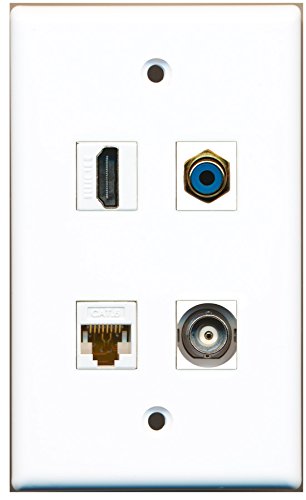 RiteAV - 1 Port HDMI 1 Port RCA Blue 1 Port BNC 1 Port Cat6 Ethernet White Wall Plate