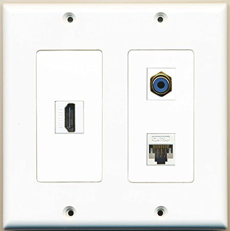 RiteAV - 1 Port HDMI 1 Port RCA Blue 1 Port Cat5e Ethernet White - 2 Gang Wall Plate