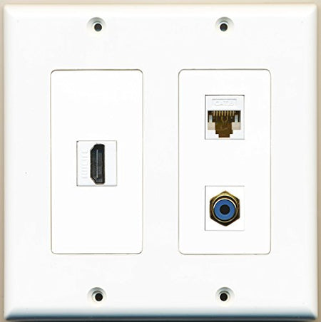 RiteAV - 1 Port HDMI 1 Port RCA Blue 1 Port Cat6 Ethernet White - 2 Gang Wall Plate