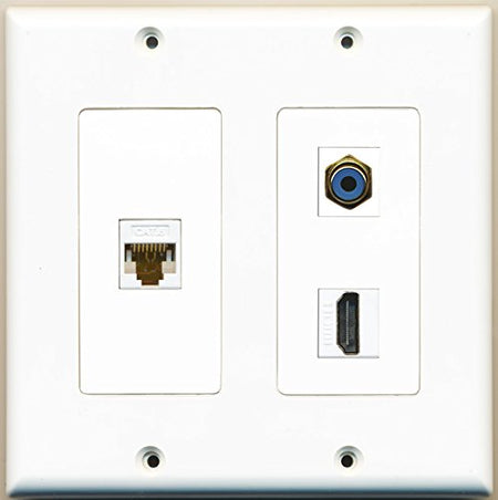 RiteAV - 1 Port HDMI 1 Port RCA Blue 1 Port Cat6 Ethernet White - 2 Gang Wall Plate