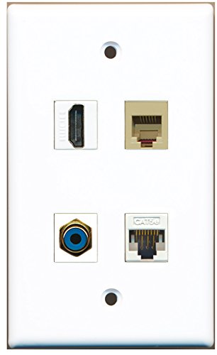 RiteAV - 1 Port HDMI 1 Port RCA Blue 1 Port Phone RJ11 RJ12 Beige 1 Port Cat5e Ethernet White Wall Plate