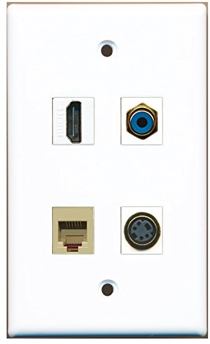 RiteAV - 1 Port HDMI 1 Port RCA Blue 1 Port Phone RJ11 RJ12 Beige 1 Port S-Video Wall Plate