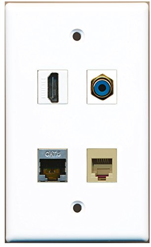 RiteAV - 1 Port HDMI 1 Port RCA Blue 1 Port Phone RJ11 RJ12 Beige 1 Port Shielded Cat6 Ethernet Wall Plate