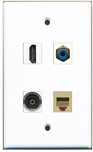 RiteAV - 1 Port HDMI 1 Port RCA Blue 1 Port Phone RJ11 RJ12 Beige 1 Port Toslink Digital Audio Wall Plate