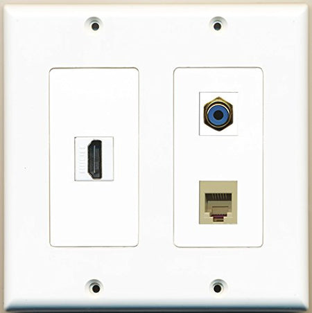 RiteAV - 1 Port HDMI 1 Port RCA Blue 1 Port Phone RJ11 RJ12 Beige - 2 Gang Wall Plate