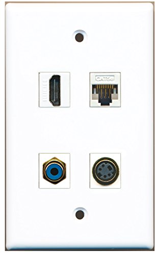 RiteAV - 1 Port HDMI 1 Port RCA Blue 1 Port S-Video 1 Port Cat5e Ethernet White Wall Plate
