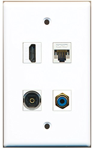 RiteAV - 1 Port HDMI 1 Port RCA Blue 1 Port Toslink 1 Port Cat5e Ethernet White Wall Plate