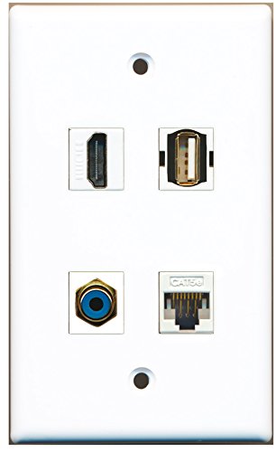 RiteAV - 1 Port HDMI 1 Port RCA Blue 1 Port USB A-A F/F 1 Port Cat5e Ethernet White Wall Plate