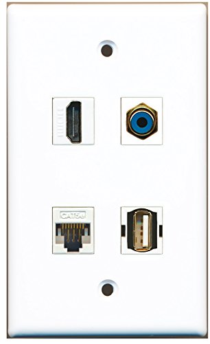RiteAV - 1 Port HDMI 1 Port RCA Blue 1 Port USB A-A 1 Port Cat5e Ethernet White Wall Plate