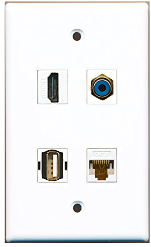 RiteAV - 1 Port HDMI 1 Port RCA Blue 1 Port USB A-A F/F 1 Port Cat6 Ethernet White Wall Plate