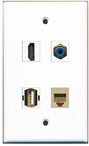 RiteAV - 1 Port HDMI 1 Port RCA Blue 1 Port USB A-A F/F 1 Port Phone RJ11 RJ12 Beige Wall Plate