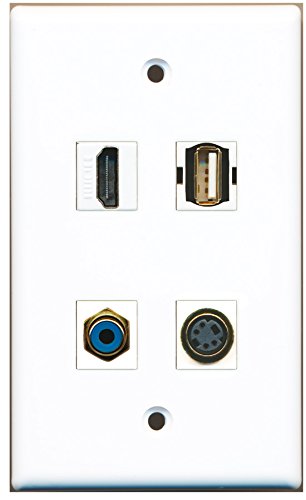 RiteAV - 1 Port HDMI 1 Port RCA Blue 1 Port USB A-A 1 Port S-Video Wall Plate
