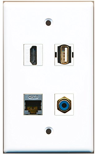 RiteAV - 1 Port HDMI 1 Port RCA Blue 1 Port USB A-A 1 Port Shielded Cat6 Ethernet Wall Plate