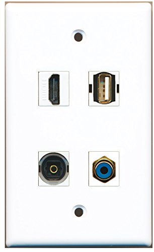 RiteAV - 1 Port HDMI 1 Port RCA Blue 1 Port USB A-A 1 Port Toslink Wall Plate