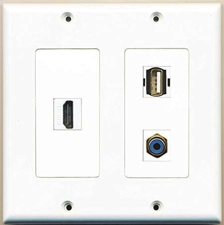 RiteAV - 1 Port HDMI 1 Port RCA Blue 1 Port USB A-A - 2 Gang Wall Plate
