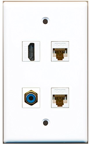 RiteAV - 1 Port HDMI 1 Port RCA Blue 2 Port Cat6 Ethernet White Wall Plate