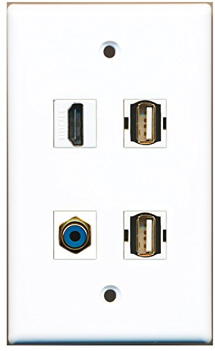 RiteAV - 1 Port HDMI 1 Port RCA Blue 2 Port USB A-A Wall Plate