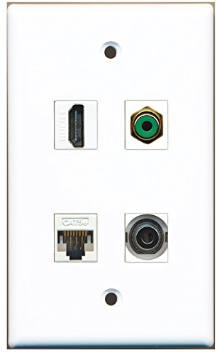 RiteAV - 1 Port HDMI 1 Port RCA Green 1 Port 3.5mm 1 Port Cat5e Ethernet White Wall Plate