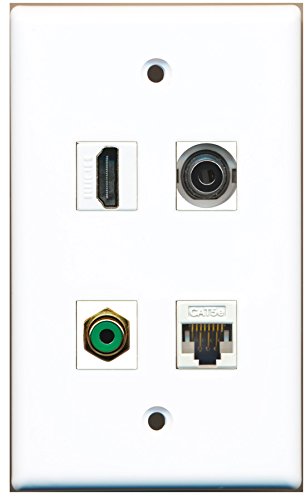 RiteAV - 1 Port HDMI 1 Port RCA Green 1 Port 3.5mm 1 Port Cat5e Ethernet White Wall Plate