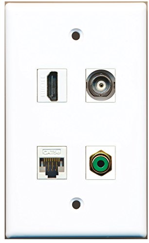 RiteAV - 1 Port HDMI 1 Port RCA Green 1 Port BNC 1 Port Cat5e Ethernet White Wall Plate