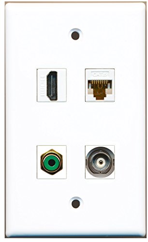 RiteAV - 1 Port HDMI 1 Port RCA Green 1 Port BNC 1 Port Cat6 Ethernet White Wall Plate