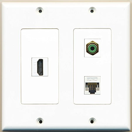 RiteAV - 1 Port HDMI 1 Port RCA Green 1 Port Cat5e Ethernet White - 2 Gang Wall Plate