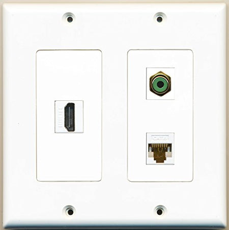RiteAV - 1 Port HDMI 1 Port RCA Green 1 Port Cat6 Ethernet White - 2 Gang Wall Plate