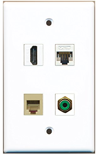 RiteAV - 1 Port HDMI 1 Port RCA Green 1 Port Phone RJ11 RJ12 Beige 1 Port Cat5e Ethernet White Wall Plate
