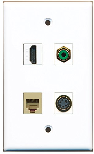 RiteAV - 1 Port HDMI 1 Port RCA Green 1 Port Phone RJ11 RJ12 Beige 1 Port S-Video Wall Plate