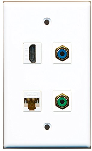 RiteAV - 1 Port HDMI 1 Port RCA Green 1 Port RCA Blue 1 Port Cat6 Ethernet White Wall Plate